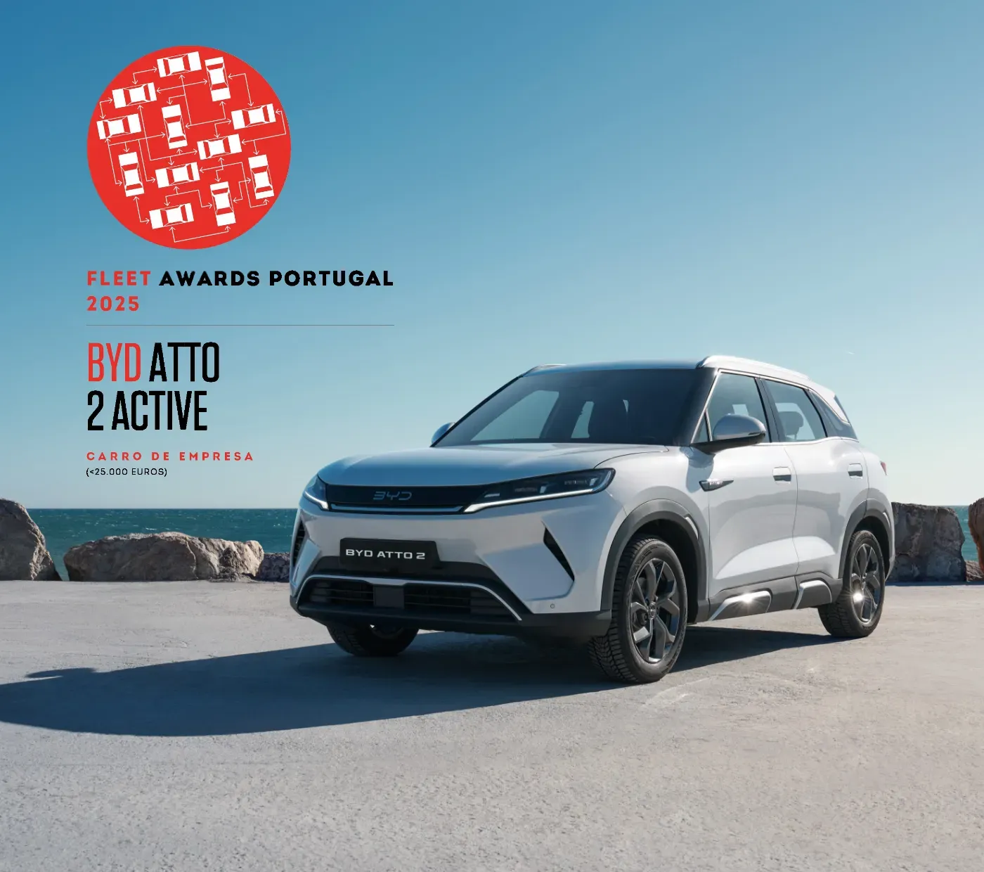 O BYD ATTO 2 foi eleito “Carro de Empresa Ligeiro de Passageiros SUV até 25.000 euros” nos Fleet Awards Portugal. Este compacto, ágil e surpreendentemente equipado, afirma‑se como a escolha inteligente para frotas modernas transformando cada trajeto numa demonstração de inovação acessível e sem compromissos. Os Fleet Awards Portugal distinguem anualmente os veículos e empresas com maior destaque no setor das frotas, em Portugal.