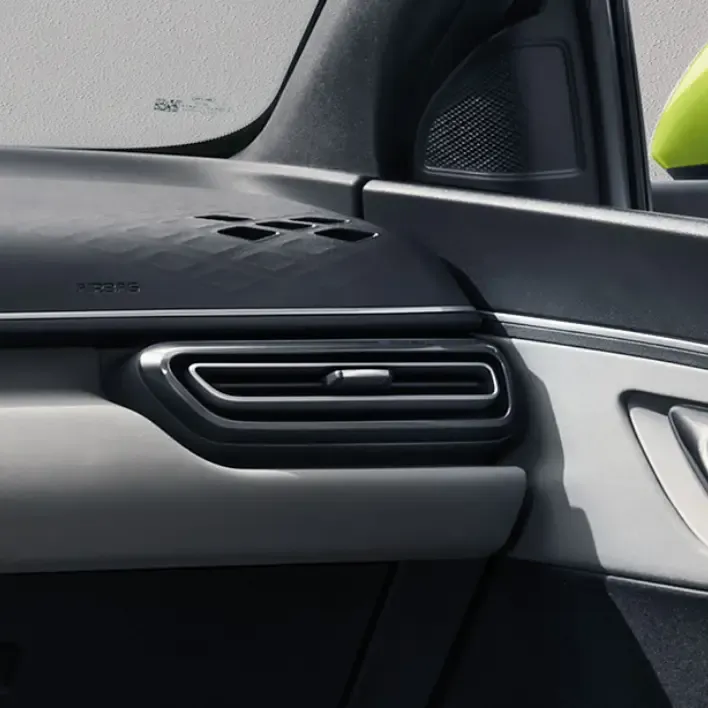 O spoiler integrado no tejadilho deste carro compacto realça o seu aspeto desportivo — aumentando o seu perfil aerodinâmico, a eficiência e contribuindo para uma excelente autonomia para a cidade.